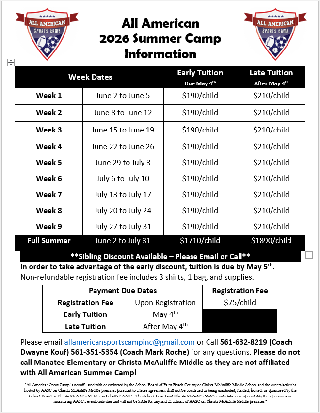 All American Sport Camp Inc. Florida's Summer Winter Fall Spring Break Camp